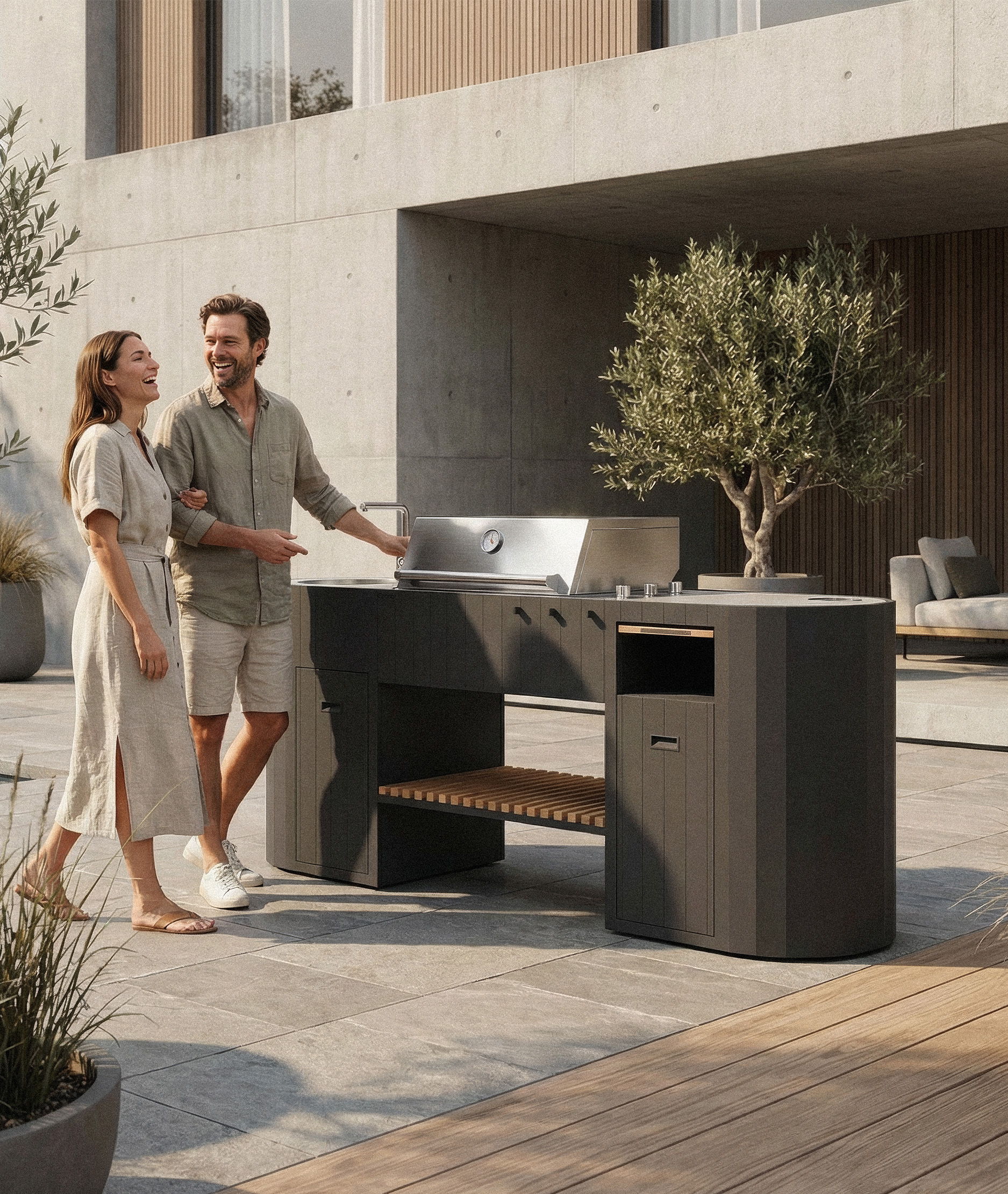 La collection associe un design architectural épuré à une fonctionnalité pratique — créant une station de cuisine extérieure prête à l’emploi.